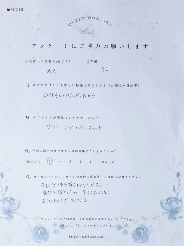 今までで一番気持ちよかったという言葉も聞けて、満足していただけたようで良かったです。
