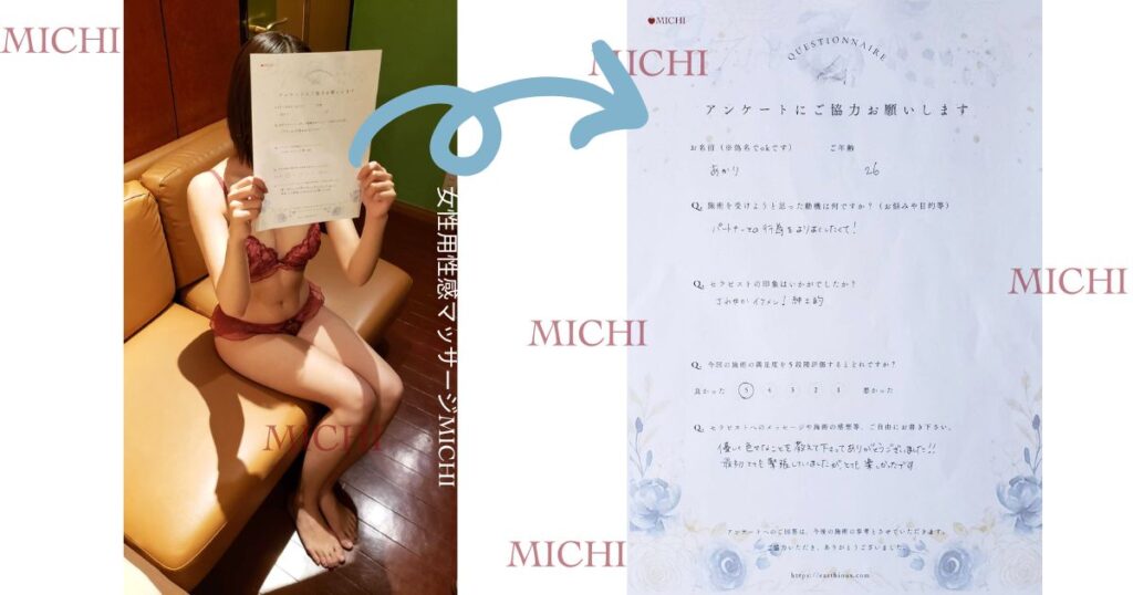 今回の体験者さんは、あかり(26歳/会社員)。応募動機は「中イキできるようになってパートナーとのセックスで満足できるようになりたいから。MICHIは中イキに特化した女性用風俗が無いか探していて見つけた。」。第一印象は清純派女優のような雰囲気のあ... -