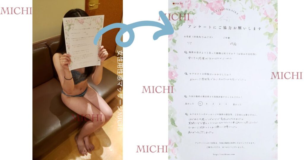 体験動画は複数あるので複数人分の施術日記を見ていただくとさらにイメージがしやすいと思います。