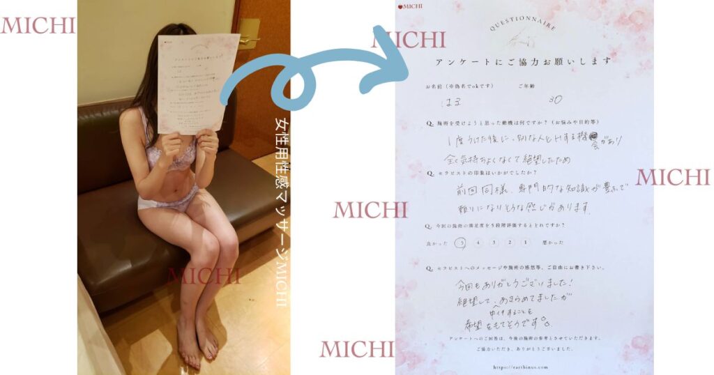 何回か体験をしてもらえれば、一回でイケなかった方も、より確実に中イキが体験出来ます。中イキが出来た方はもっともっと快感が深くなったり、より強い幸せを感じるようになるでしょう。